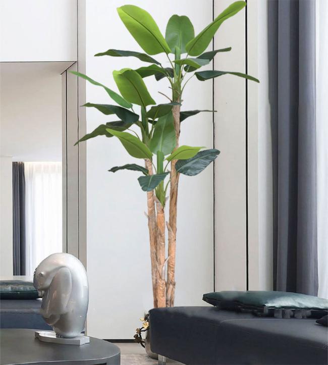 卸売7フィート人工バナナの木植物| 天然樹皮幹| メンテナンスフリー| リビングルーム&オフィスデコレーション用屋内ヤシ