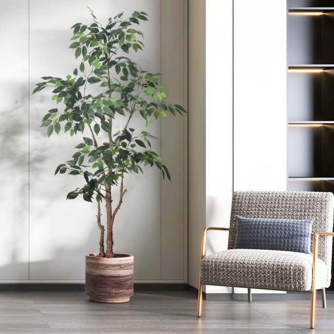 ハイホング メーカー シルクの葉 6 フィート 人工フィカス 木と自然幹, プラスチックポットと偽フィカス 木, オフィスのための偽フィカス 木 家 屋内外装飾のための農場
