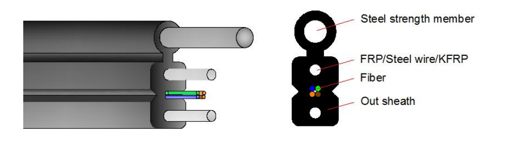 直接家に、帯域幅接続される、FTTHケーブル波長およびトランスミッション技術のタイプは制限されない。光ファイバーの単位は中心で置かれる。2人の平行強さメンバーは双方に置かれる。付加的な強さメンバーがまた加えられると同時に鋼線は黒いLSZHの外装と、そして、ケーブル完了する。