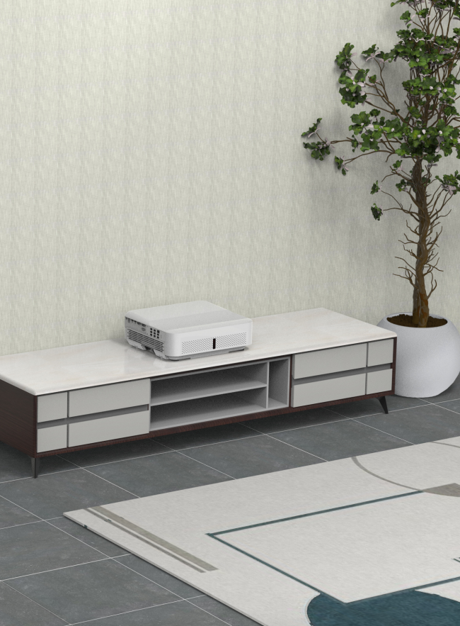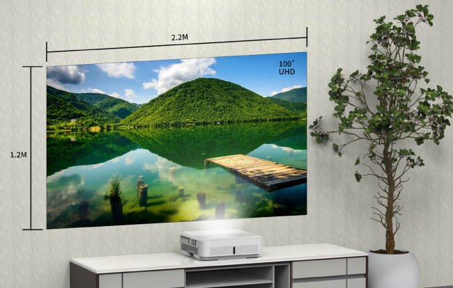 0.235:1の超短焦点投写比率により、本体後端が壁から20cm未満で、100インチの大画面フレームを楽しむことができます。