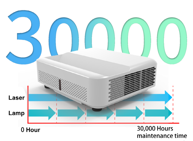 レーザー光源の明るさは、使用時間の経過とともに徐々に低下します。レーザー光の実際の寿命は、使用モード、環境条件、ユーザーの習慣などの要因によって影響を受けます。1日4時間使用すると、プロジェクターは約20年間使用でき、寿命が効果的に延長されます。